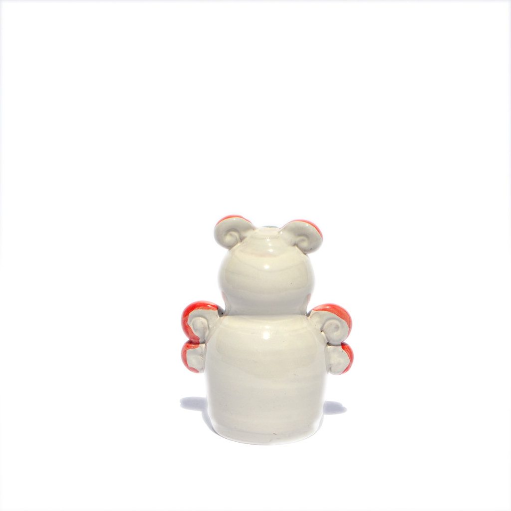 statuetta tridimensionale raffigurante il gufo, interamente realizzata a mano con smalto e colori policromi.