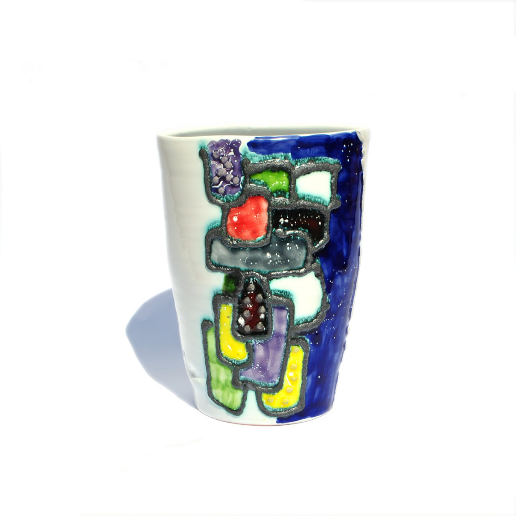 realizzato e decorato a mano con smalti policromi e inserti in piombo. Disegni astratti.