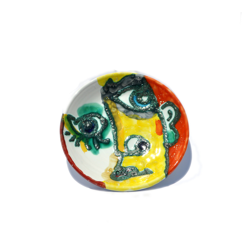 Tondo, piatto decorativo in ceramica da muro, interamente realizzato e decorato