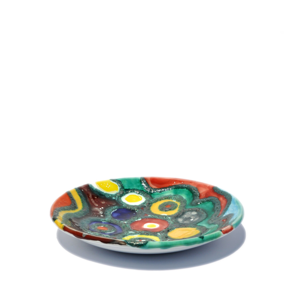 Tondo, piatto decorativo in ceramica da muro, interamente realizzato e decorato