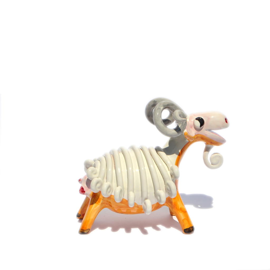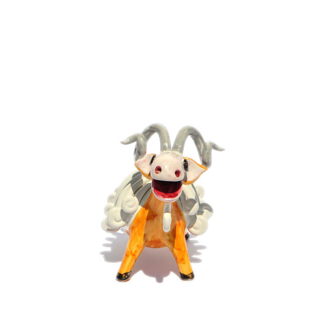 statuetta tridimensionale raffigurante la capra, interamente realizzata a mano con smalto e color...